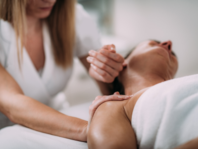 A therapeutic technique using touch and pressure to promote relaxation and well-being.